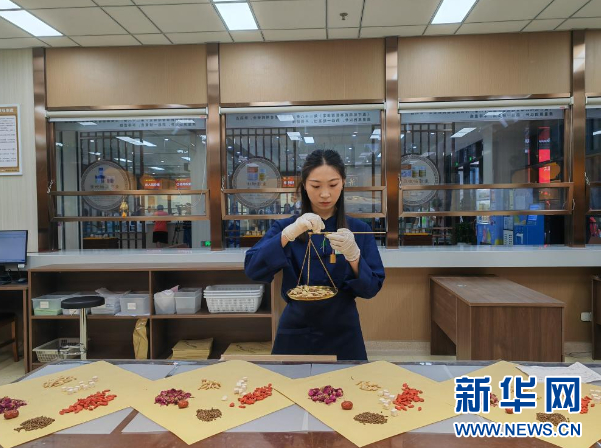 4月20日,在贵州中医药大学第二附属医院红岩院区的中药房,工作人员在抓配中药。新华社记者 吴思 摄