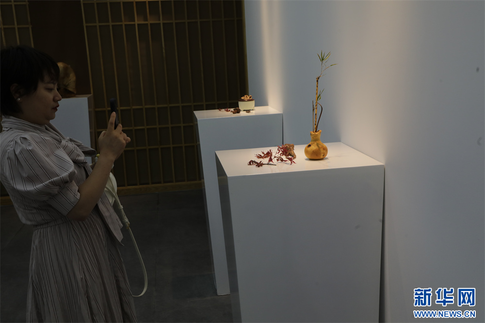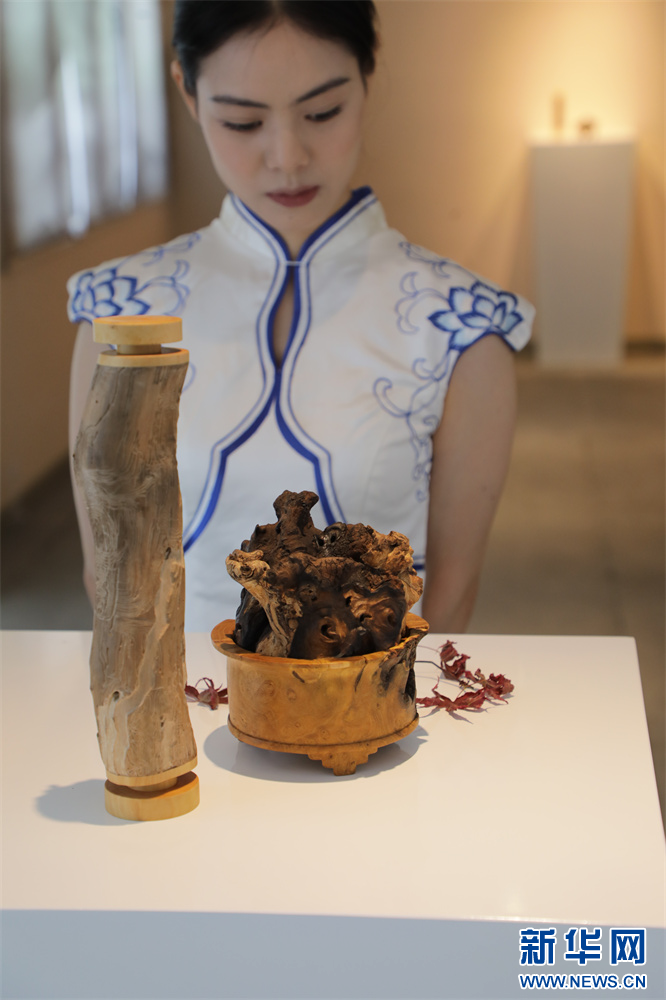 4月20日,一名礼仪工作人员在贵州省沉香文化交流中心观看展品。新华网 黄勇 摄