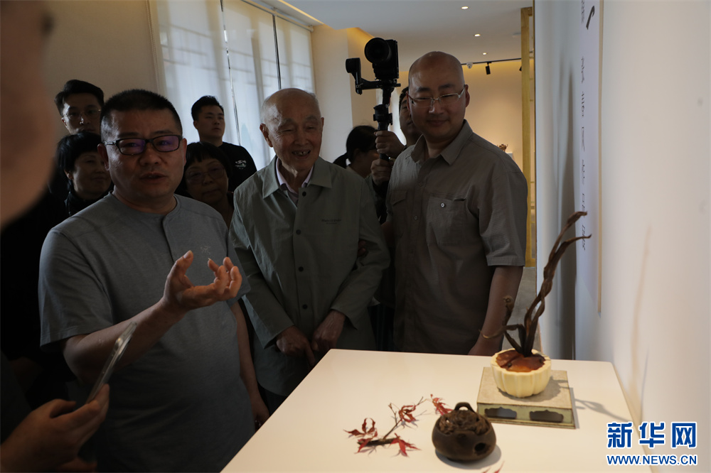 4月20日,郑尧锦在讲解作品创作思路。新华网 黄勇摄