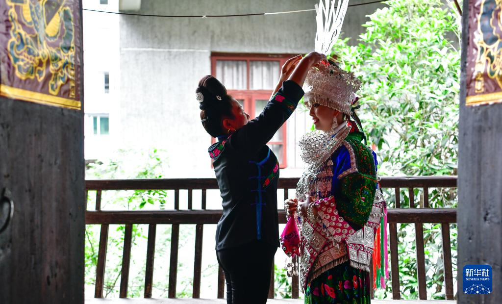 4月21日,苗族女孩们穿上节日盛装,准备参加苗族姊妹节盛装游演。新华社记者 杨文斌 摄pagebreak