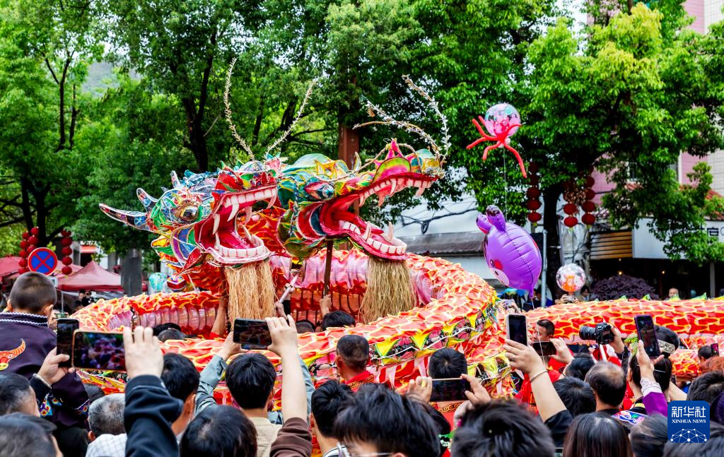 4月21日,人们在台江县苗族姊妹节进行舞龙表演。新华社发(范晖摄)pagebreak