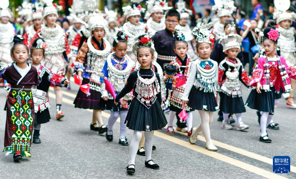 4月21日,苗族小朋友参加台江苗族姊妹节盛装游演。新华社记者 杨文斌 摄pagebreak