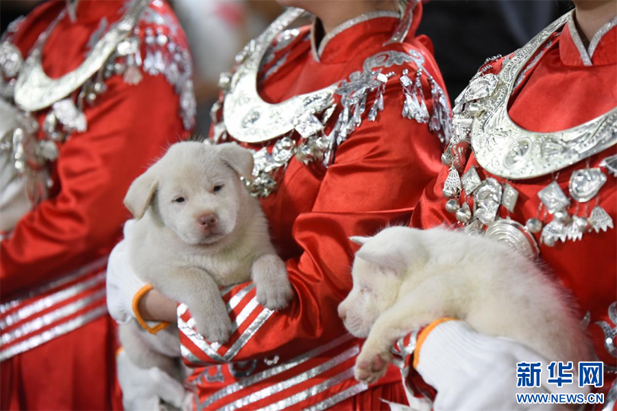 4月27日,互动环节观众奖品——下司犬。新华网发(王永菠 摄)