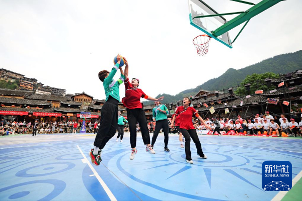 新华社贵阳4月28日电(记者郑明鸿)28日,2024年贵州省第一届“姑妈”篮球邀请赛在黔东南州雷山县西江千户苗寨景区开赛。