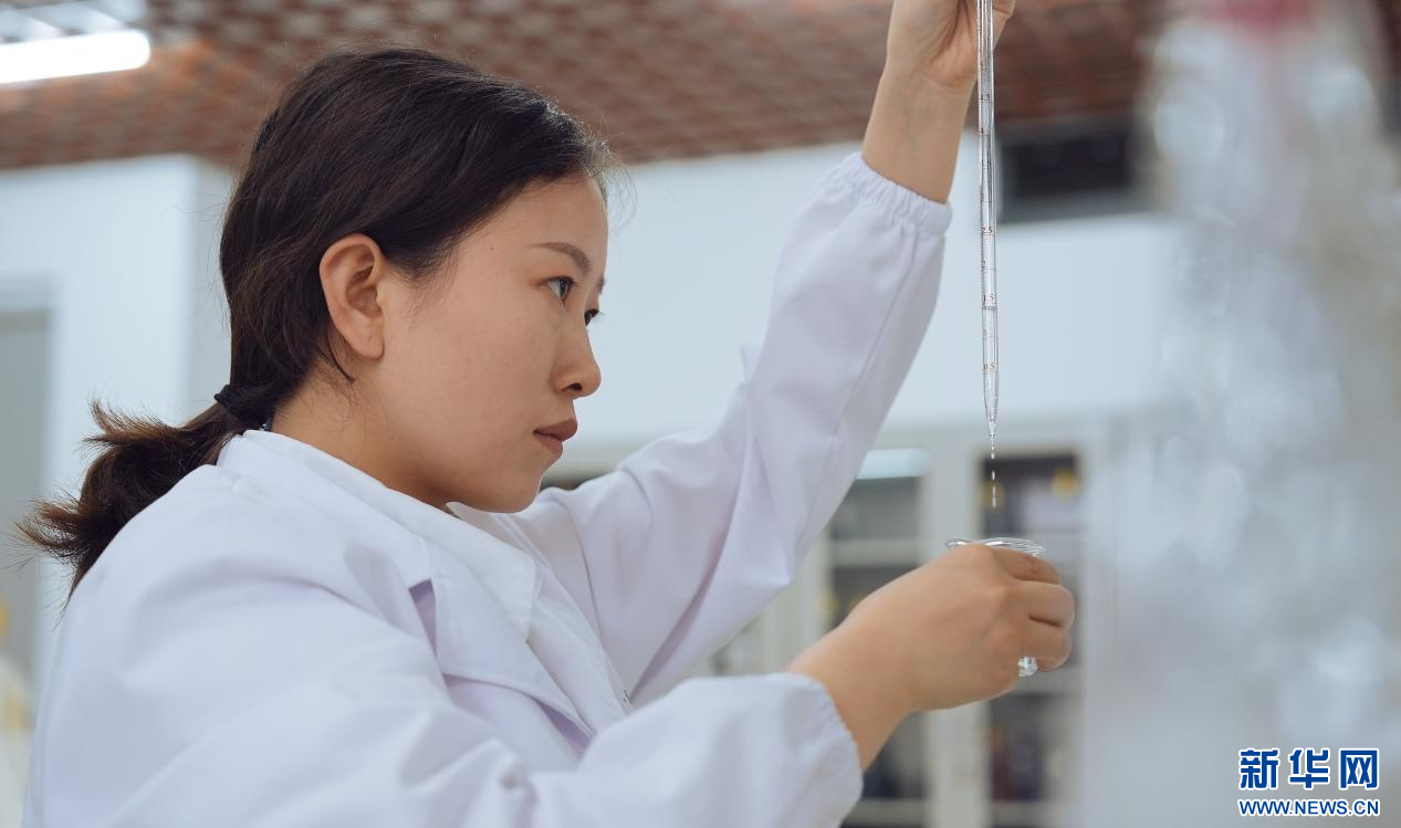 4月29日,酒体设计师用移液管勾调小样,失之毫厘谬以千里,勾调精确度要求很高。新华网 卢志佳 摄