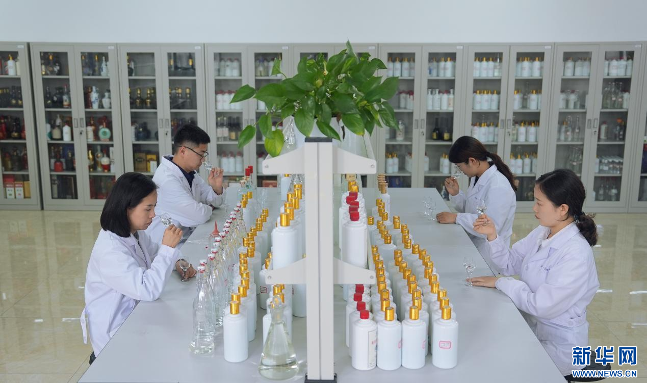 4月29日,酒体设计师在勾调小样,酒体设计要运用感官鉴评、分析、综合评判原酒和调味酒的组合特性,提出酒体配比方案。新华网 卢志佳 摄