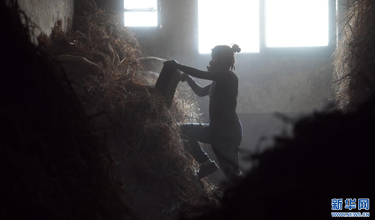 4月29日,贵州珍酒厂的制曲工人在曲仓翻曲,发酵期间要经过多次翻曲,确保酿酒微生物的充分生长。新华网 卢志佳 摄