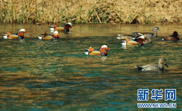 新华网贵阳5月2日电(卢志佳)近日,贵州科学院科研人员在贵州威宁草海生态系统首次发现国家II级重点保护鸟类鸳鸯较大规模野生种群,鸳鸯种群数量高达67只。