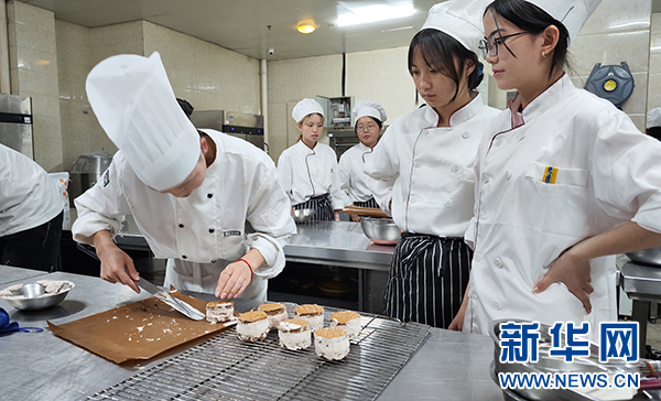 5月7日,贵航职院食品工程学院的学生在课堂上练习西点制作。新华网 卢志佳 摄