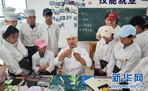 5月7日,刘先在课堂上教授学生中餐冷拼技术。新华网 卢志佳 摄