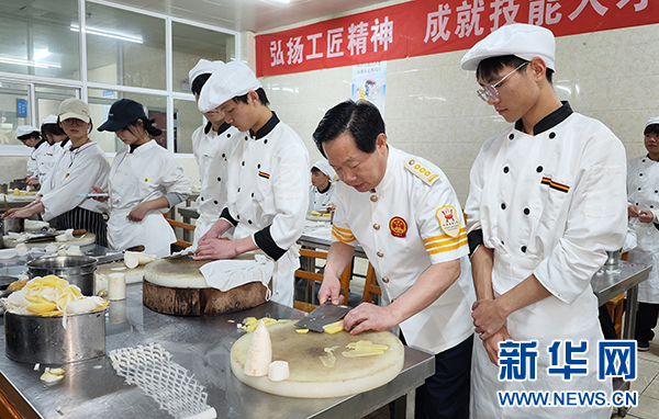 5月7日,刘先在课堂上教授学生刀工。新华网 卢志佳 摄