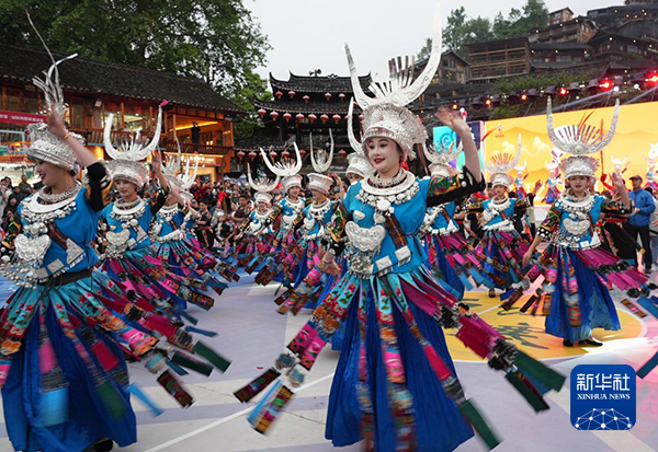 新华社贵阳5月10日电(记者郑明鸿)今年春节以来,到贵州省雷山县西江千户苗寨游玩的游客,除了领略苗寨风光,还有机会现场观看一场规则新颖、乐趣满满的篮球赛:女球员身着具有民族特色的服装,抱着球全场奔袭,或自己进攻,或将球传给机会更好的队友……