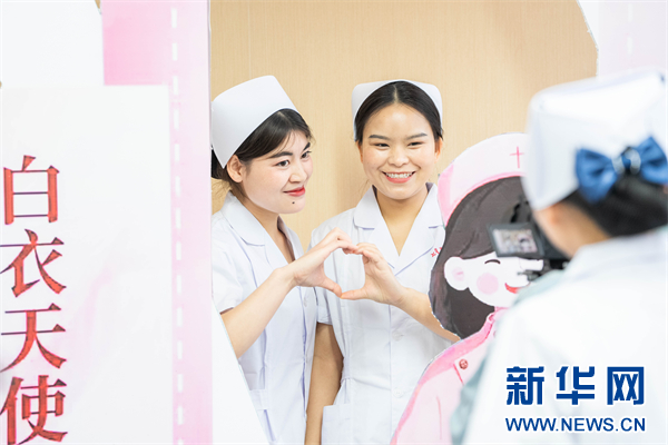 5月11日,贵州省毕节市七星关区人民医院碧海院区的护士们正在拍照留念。新华网发(罗大富 摄)