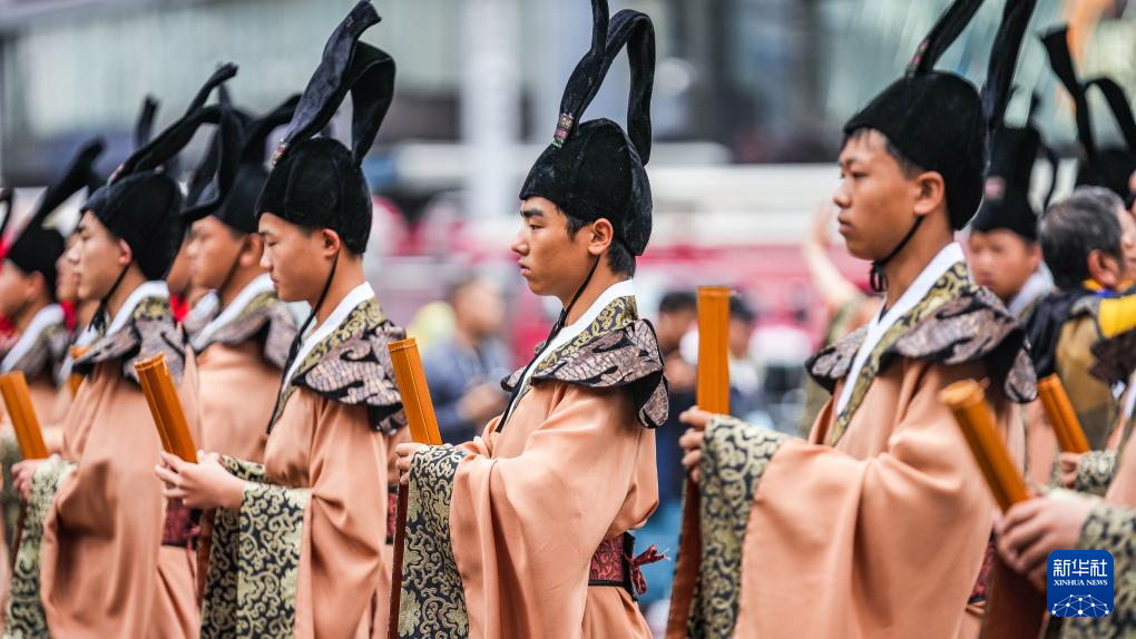 5月18日,贵阳市修文县方阵的表演队伍在进行巡游。新华社记者 陶亮 摄