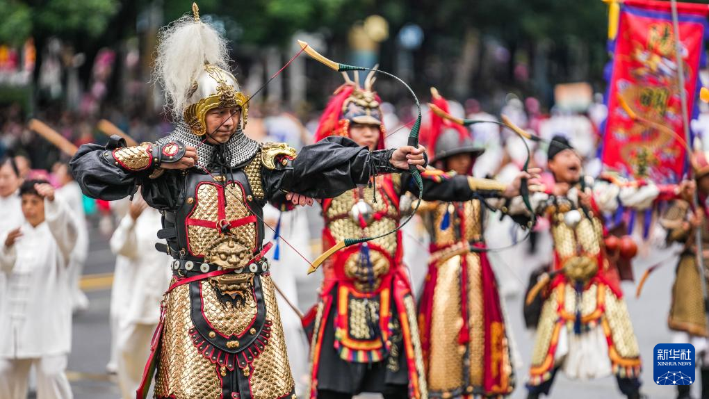 5月18日,中华武术方阵的表演队伍在进行巡游。新华社记者 陶亮 摄