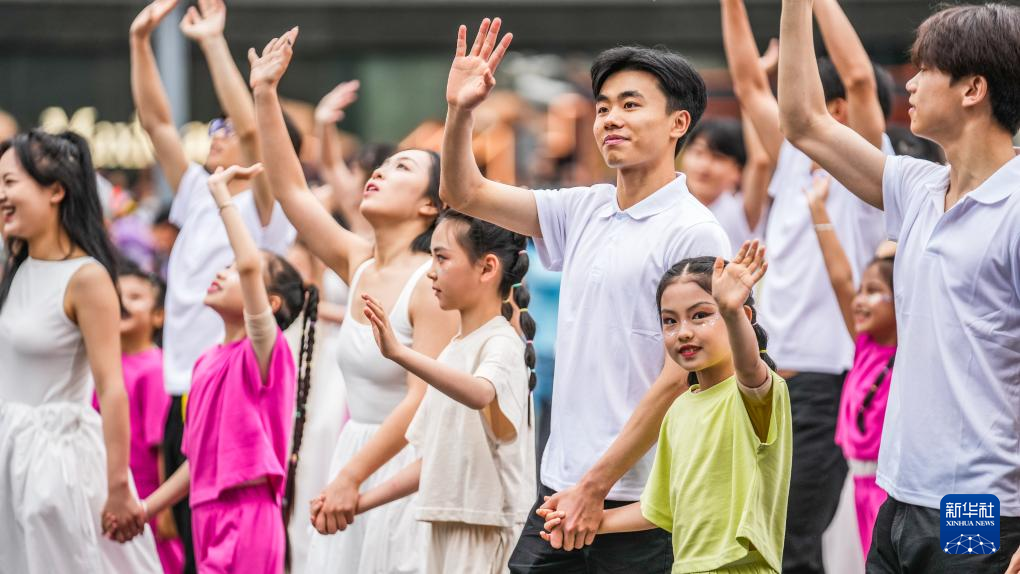 5月18日,贵阳市云岩区方阵的表演队伍在进行巡游。新华社记者 陶亮 摄