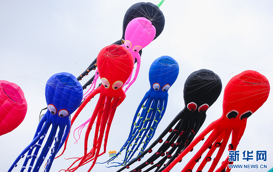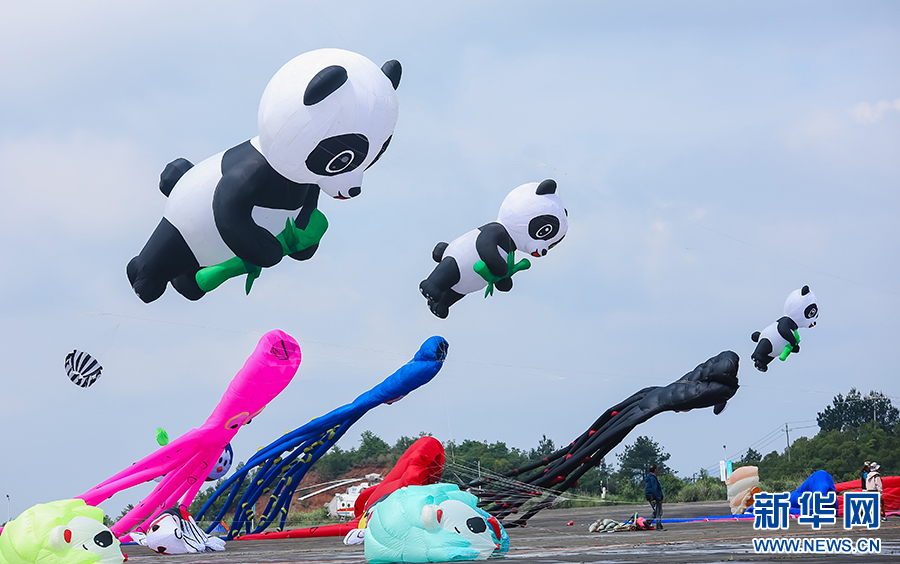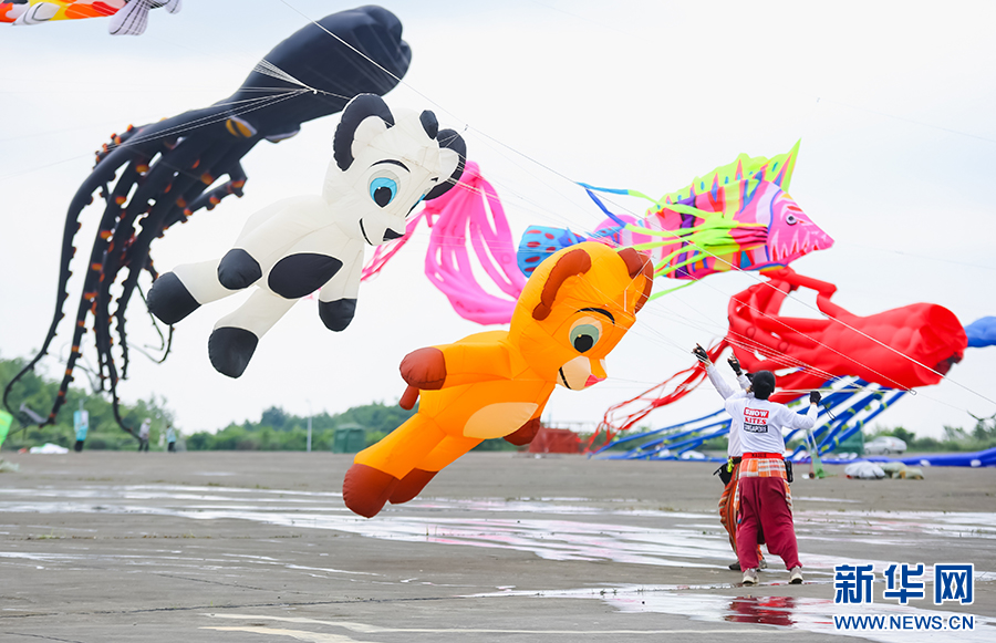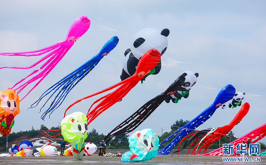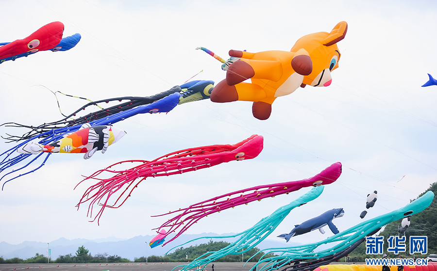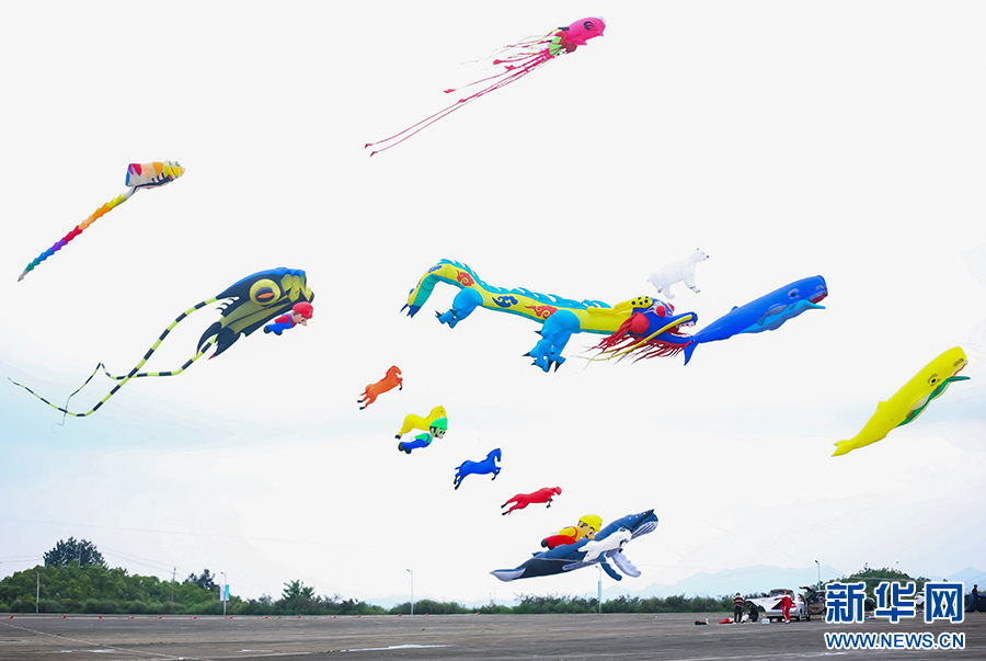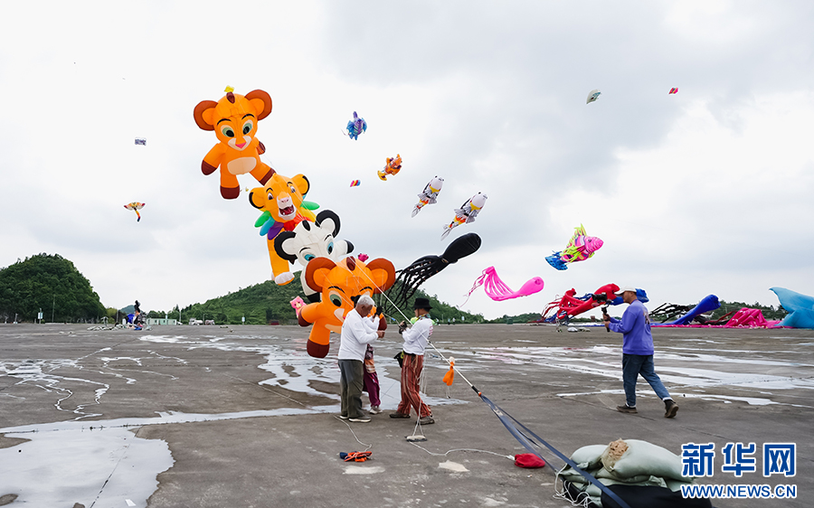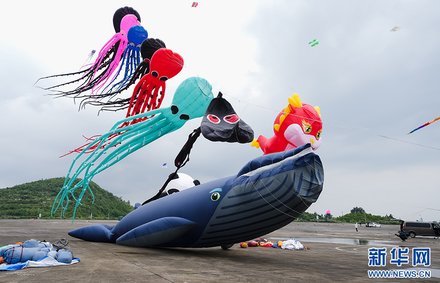 5月19日,2024年贵阳白云国际风筝会暨全国风筝邀请赛比赛现场,形态各异的风筝。新华网发pagebreak