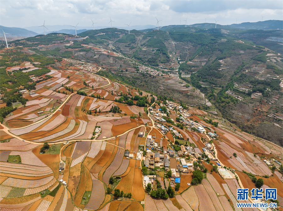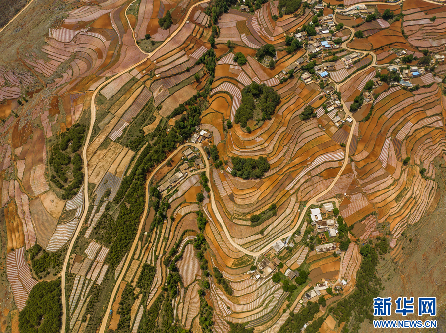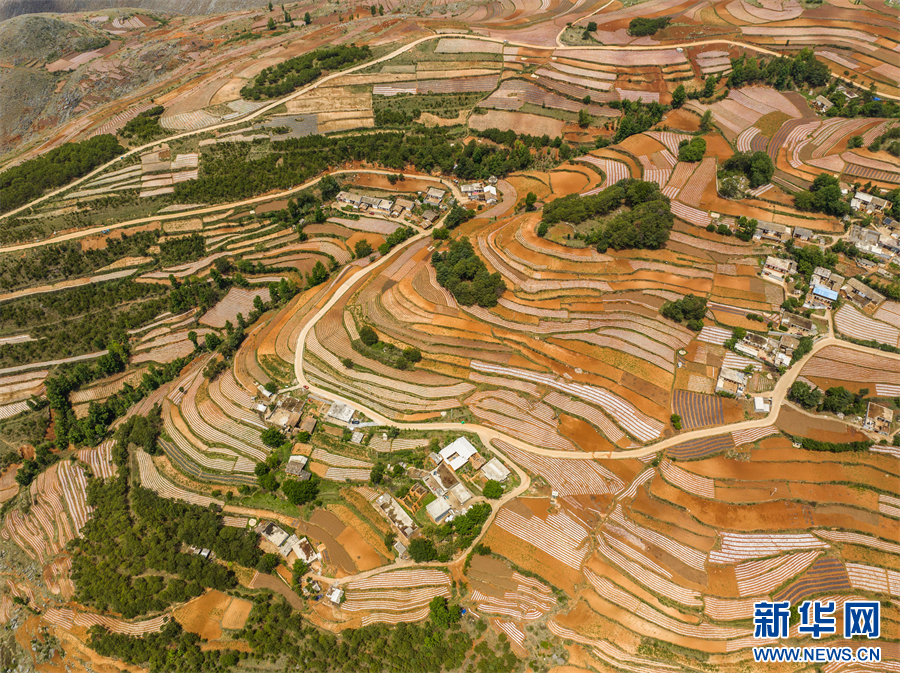 航拍贵州省毕节市威宁彝族回族苗族自治县海拉镇的乌蒙高原独特风光(5月21日摄)。新华网发(罗大富 摄)pagebreak