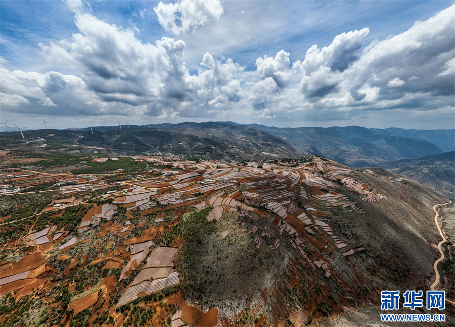 航拍贵州省毕节市威宁彝族回族苗族自治县海拉镇的乌蒙高原独特风光(5月21日摄)。 新华网发(罗大富 摄)pagebreak