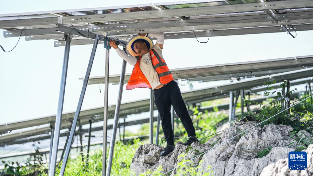 在盘江百万千瓦级光伏基地,贵州能源集团的工人在维修并安装光伏板(5月23日摄)。新华社记者 陶亮 摄pagebreak