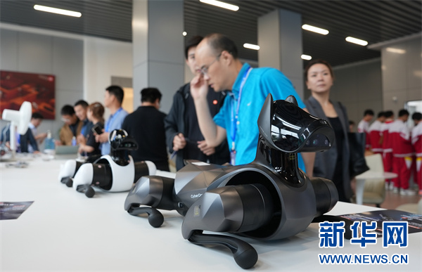 5月29日,与会嘉宾参观小米仿生四足机器展示。新华网 卢志佳 摄