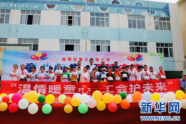 新华网贵阳5月31日电(记者李凡)5月31日,在“六一”国际儿童节到来之际,中建安装华西公司贵阳万象城项目联合贵州省总工会、贵阳市总工会、南明区总工会共同开展“温情暖童心 工会护未来”六一主题慰问活动。