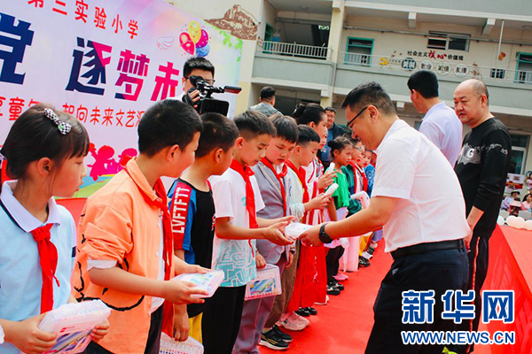 活动主办方走进了贵阳市南明区第三实验小学,为学校100余名小朋友们准备了水彩笔、铅笔等一系列慰问品,向小朋友们致以节日问候和美好祝愿。