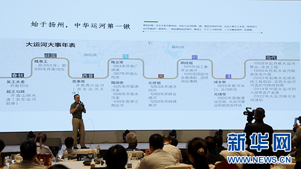 “中国大运河”2014年6月被联合国教科文组织列入《世界遗产名录》。扬州有“中国运河第一城”之誉。茅台集团党委副书记、工会主席高山从寻“山河”之道、“历史”之道、“融汇”之道三方面分享了“茅台1935·寻道中国”与扬州的“喜逢”。