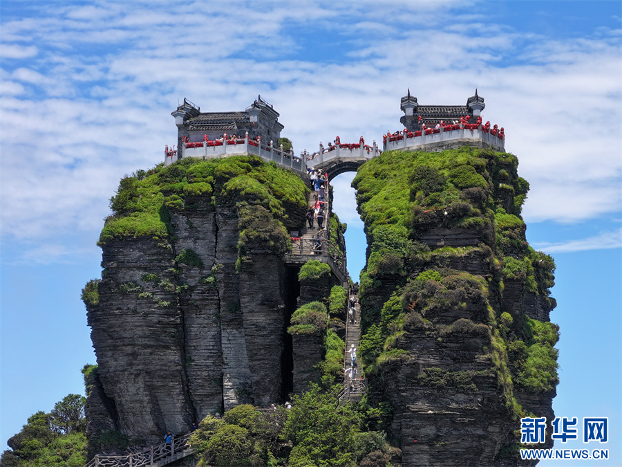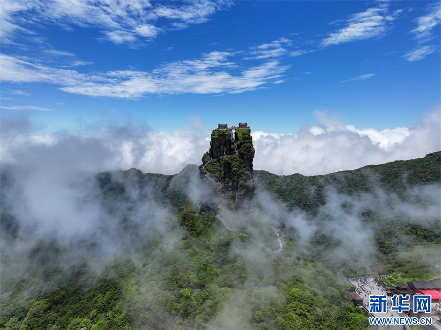 6月6日,在世界自然遗产地梵净山景区拍摄的夏日风光(无人机照片)。新华网发(李鹤 摄)