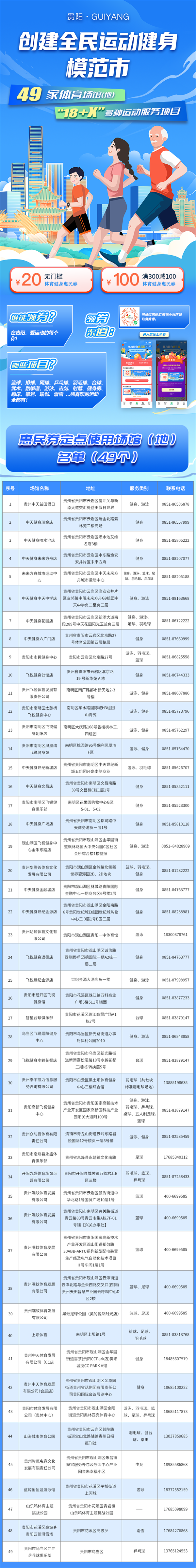 惠民券定点使用场馆(地)名单。新华网发(贵阳市体育局提供)