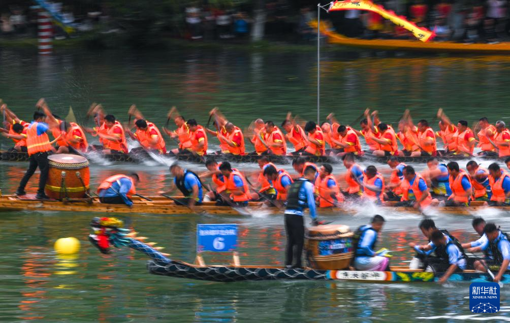 6月10日,参赛队伍在贵州省镇远县㵲阳河上进行龙舟比赛。新华社记者 杨文斌 摄