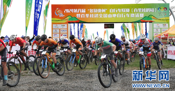 新华网贵阳6月24日电(卢志佳)2024第八届“多彩贵州”自行车联赛(百里杜鹃站)暨百里杜鹃全国山地自行车邀请赛6月23日开赛。来自全国各地的900余名自行车选手在毕节市百里杜鹃的方家坪景区同场竞技。