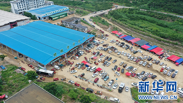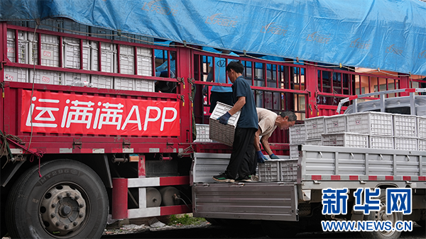 外地客商在六马镇通过运满满App调货车来拉货。新华网 卢志佳 摄