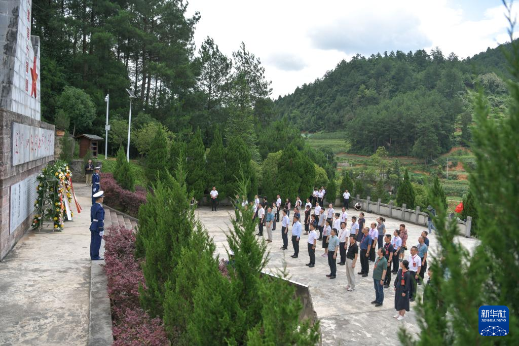 参会人员在困牛山红军壮举纪念碑缅怀先烈。新华社记者 杨文斌 摄pagebreak