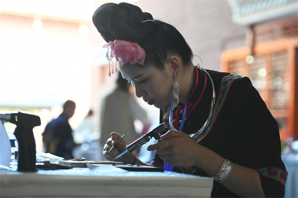 7月5日,贵州省凯里市,选手吴秋燕在参加银饰制作比赛。(杨仁海 摄)