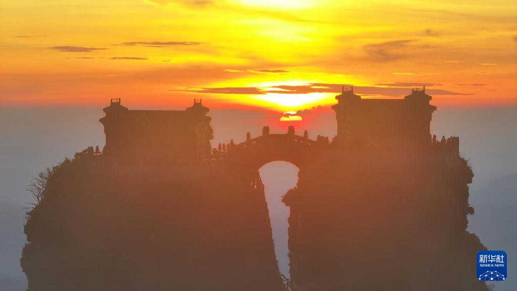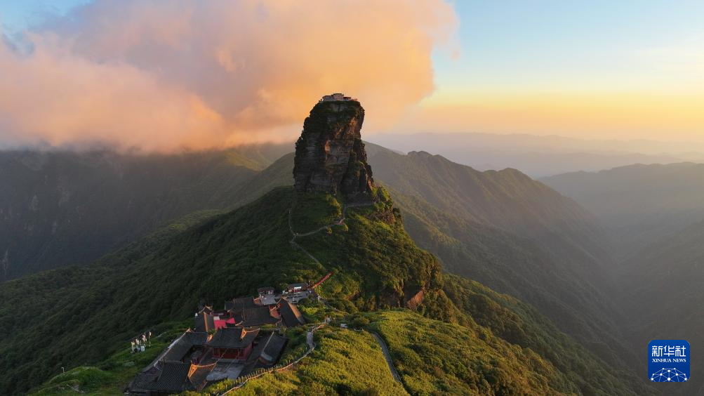 7月15日在贵州梵净山红云金顶拍摄的霞光红云景观(无人机照片)。新华社发(李鹤 摄)pagebreak