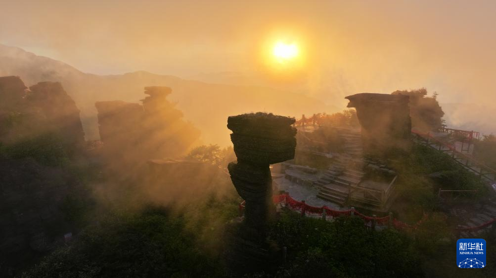 入伏以来,世界自然遗产地梵净山时而云海翻滚,时而云雾缥缈,霞光红云,美不胜收。