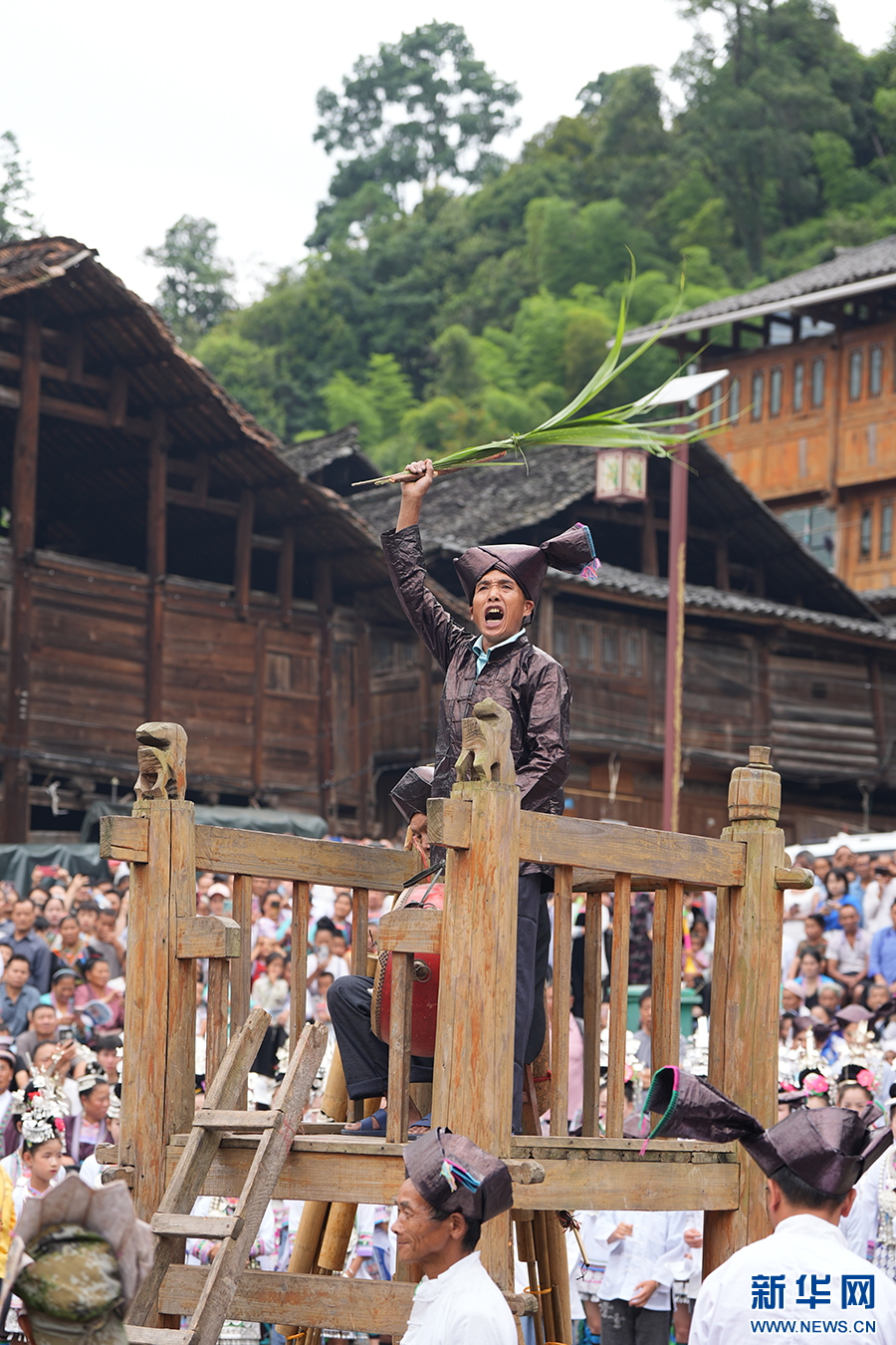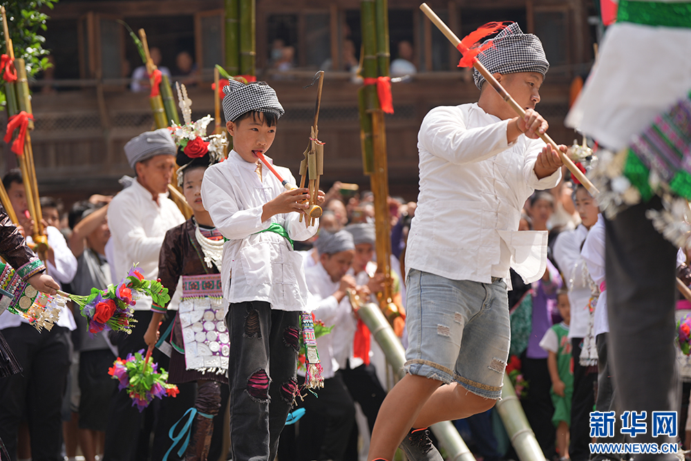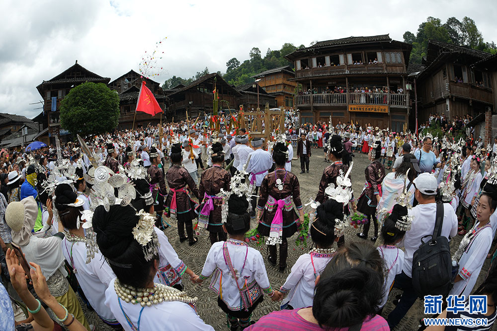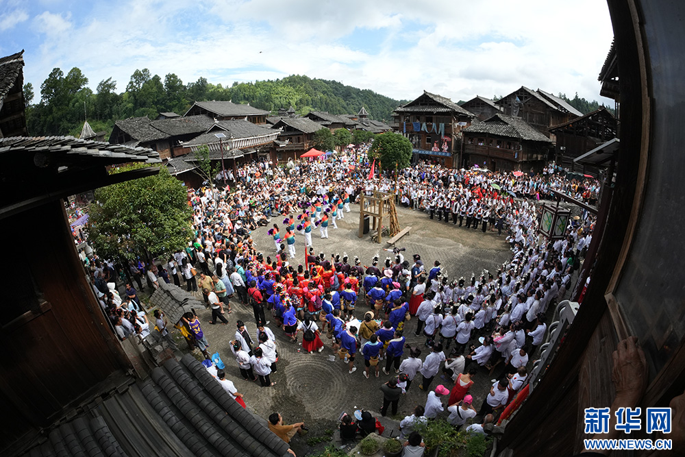 7月20日,在贵州省黎平县双江镇黄岗侗寨拍摄的 “喊天节”活动现场。 新华网发(龙建睿 摄)pagebreak