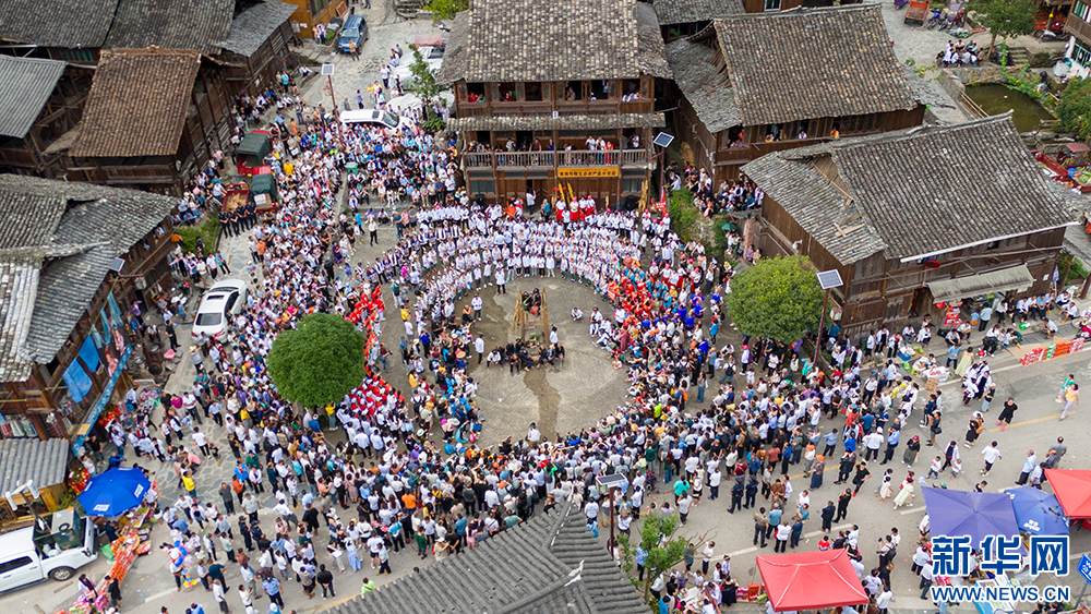 7月20日,在贵州省黎平县双江镇黄岗侗寨拍摄的 “喊天节”活动现场(无人机照片)。新华网发(龙建睿 摄)pagebreak