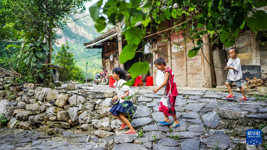 小朋友从天门村一处石板路上经过(7月16日摄)。新华社记者 陶亮 摄pagebreak