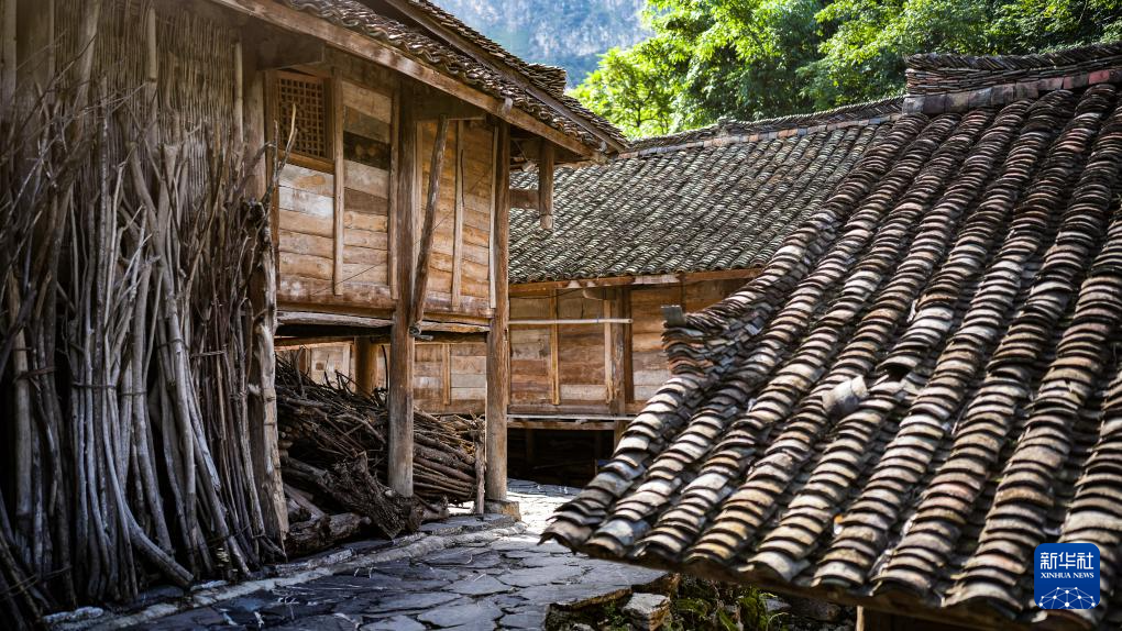 天门村大寨组传统布依族木瓦结构吊脚楼一隅(7月16日摄)。新华社记者 陶亮 摄pagebreak