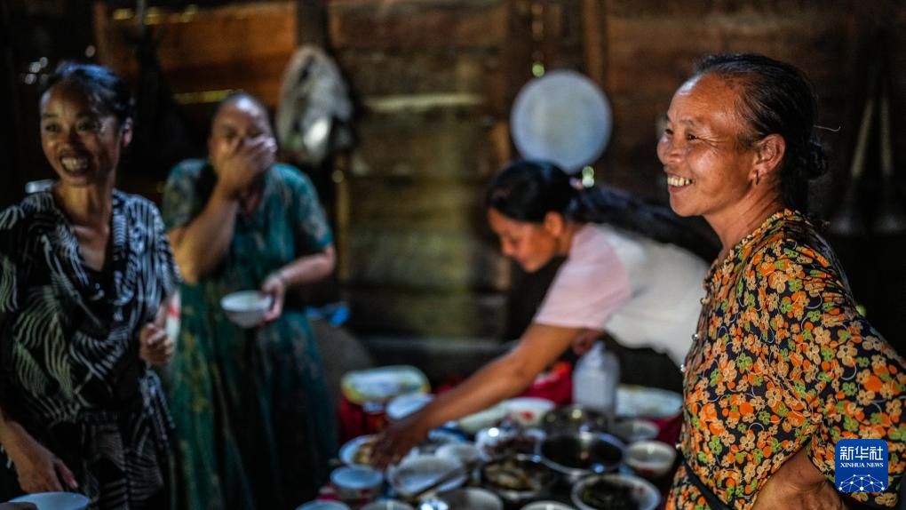 天门村村民陆胜秀(右一)等在家中聚餐(7月16日摄)。新华社记者 陶亮 摄pagebreak