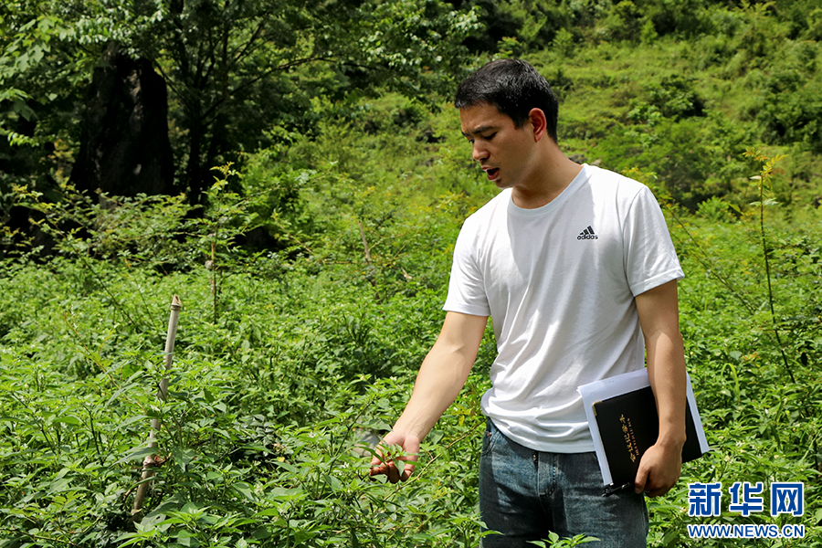 安顺经开区农林牧水局工作人员苏若成介绍套种模式。新华网发(谭诗协 摄)