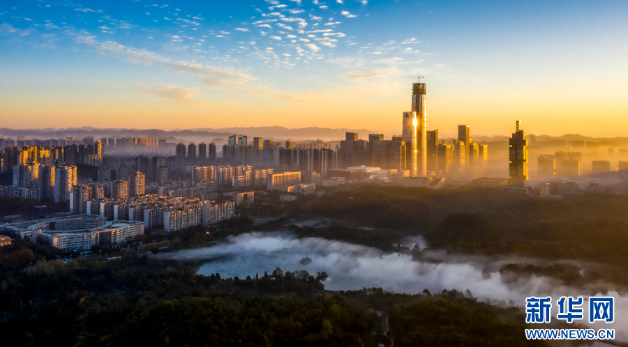 位于观山湖区的贵阳金融中心夜景(资料图)。新华网发