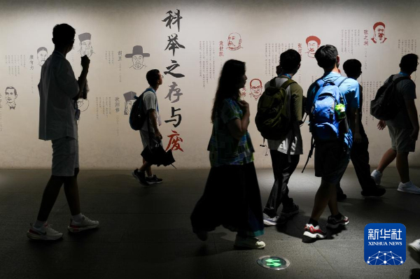 7月10日,来自香港的青少年在南京中国科举博物馆内参观。新华社记者 李博 摄