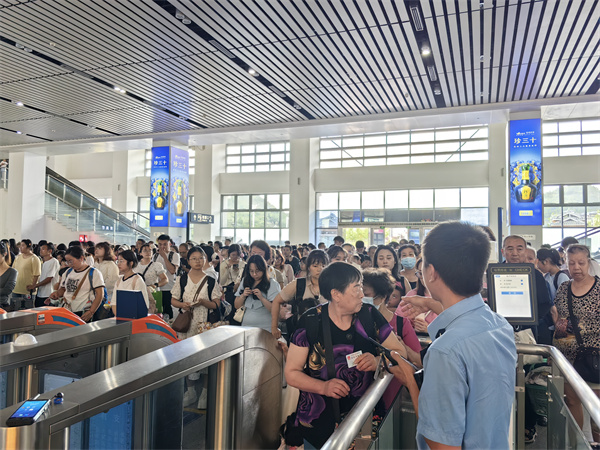 暑运期间,迎来旅游旺季,旅客出行意愿普遍较高,加之该段所在地黔东南州境内因“村超”“村BA”赛事火爆,吸引大量客流,在旅游客流、返程探亲客流、学生客流等多重客流交织下,客流增幅明显。为最大限度满足热门线路旅客出行需求,凯里车务段根据客流变化情况,加强与成都局集团公司对接协调,申请采取加开、重联等方式,暑运期间,该段管内高峰线开行18列动车组列车,方便热门线路旅客出行。