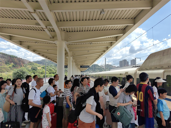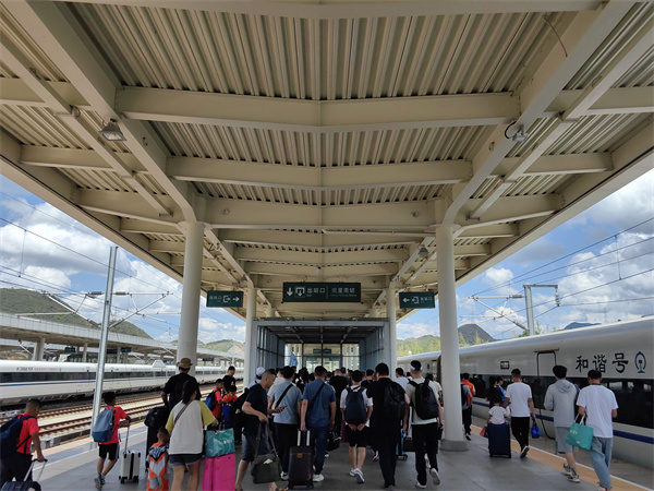 2024年铁路暑运自7月1日拉开帷幕,至7月31日时间过半,中国铁路成都局集团有限公司凯里车务段累计发送旅客76.2万人次,到达旅客76.6万人次,较2023年增加0.4万人次,同比增长0.5%。7月20日迎来客流高峰,当日发送旅客3.6万人次,其中,该段管内凯里南站发送旅客1.94万人次,均创下单日发送旅客人数历史新高。