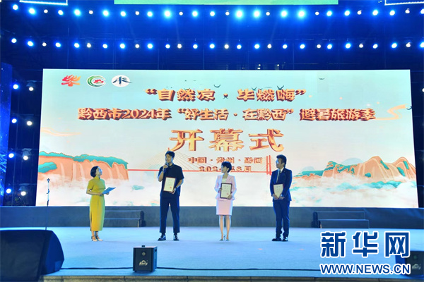新华网贵阳8月2日电 8月1日晚,“自然凉·毕燃嗨”黔西市2024年“好生活·在黔西”避暑旅游季活动开幕式在贵州省毕节黔西市举行。