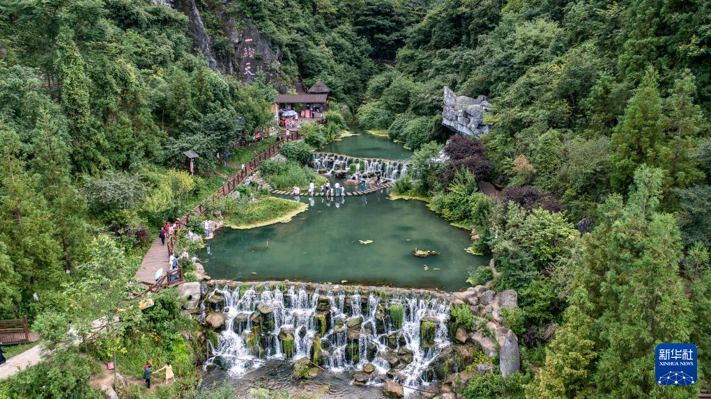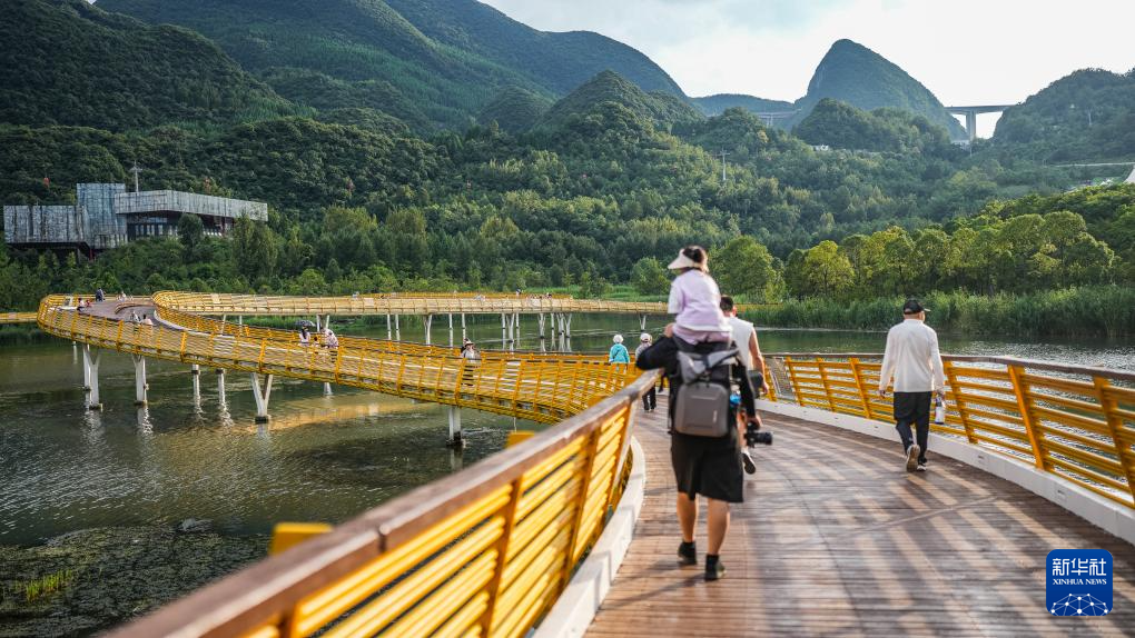 游客在贵州六盘水明湖国家湿地公园观光游玩(8月7日摄)。新华社记者 陶亮 摄