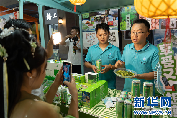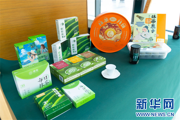 市集商户通过线上推广抹茶产品。新华网发(刘德文 摄)
